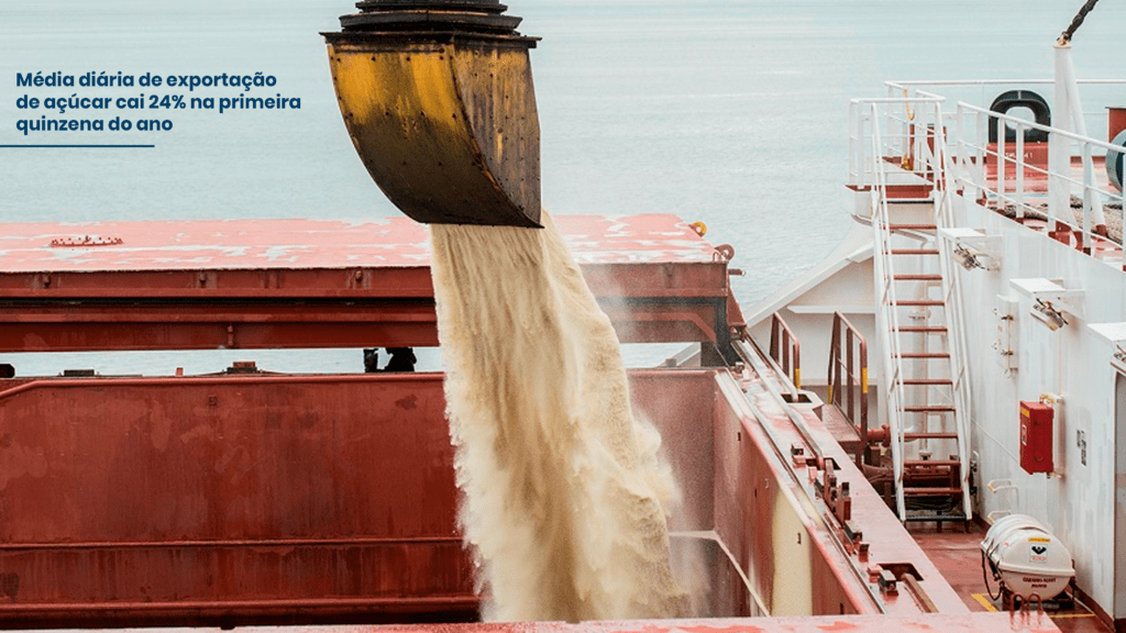 Média diária de exportação de açúcar cai 24% na primeira quinzena do ano