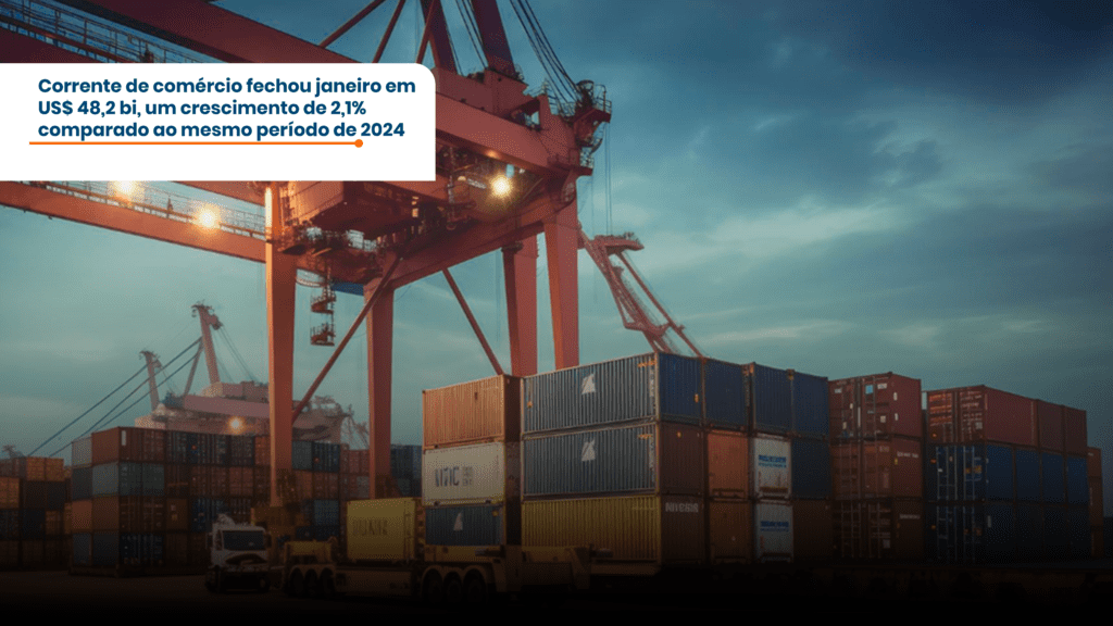 Corrente de comércio fechou janeiro em US$ 48,2 bi, um crescimento de 2,1% comparado ao mesmo período de 2024