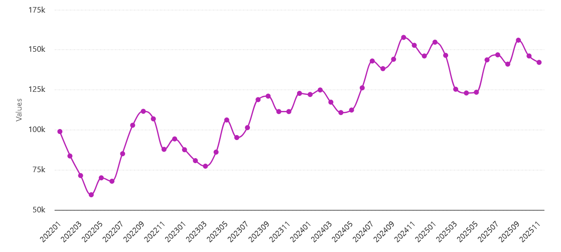Importações brasileiras via contêineres da China | Jan 2022  a Nov 2025 | TEU