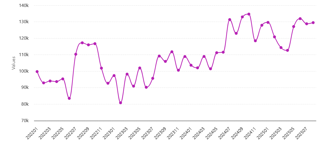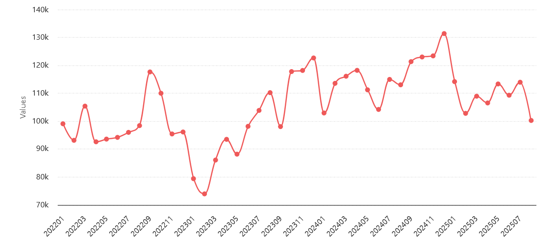 Exportações de Contêineres no Porto de Santos | Jan 2022 a Ago 2025 | TEU